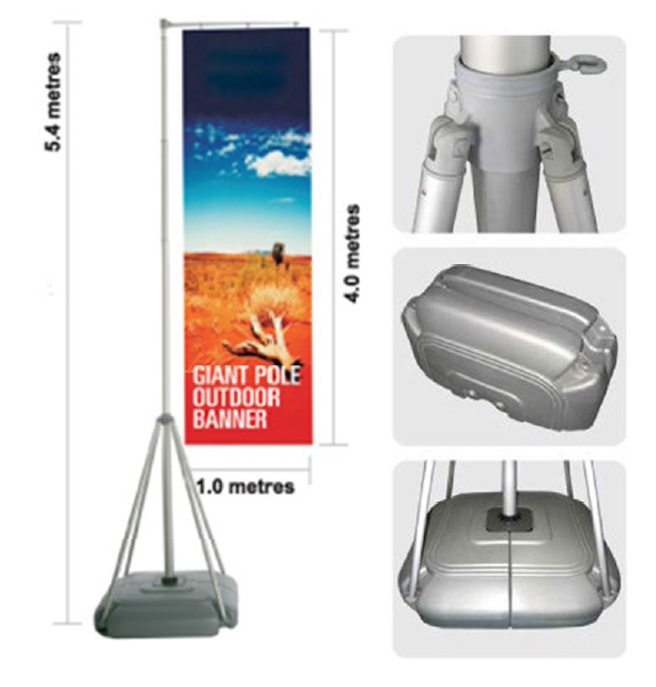 Each flag pole features a moulded base with 66L capacity, which can be filled with water or sand for exceptional stability, even in strong winds.